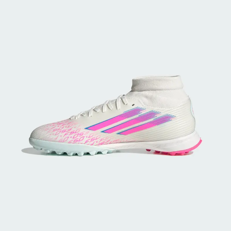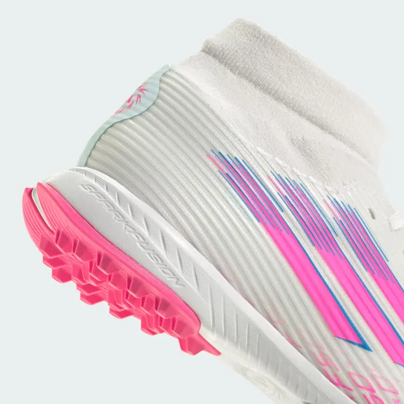 Designed for her. Light up the pitch in supportive F50 Sparkfusion cleats created specifically for female athletes. These adidas League cleats have a soft Fiberskin upper for comfort, a specially shaped last for the perfect fit, and a lug rubber outsole for traction on artificial turf. The result? Footwear that will help you fulfill your soccer potential.