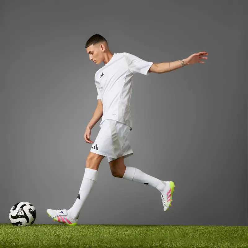 Go into every game knowing you’ll score in adidas Predator Elite cleats crafted for goals. With strategically placed rubber Strikeskin fins and a fold-over tongue, the flexible HybridTouch upper is designed to help you make perfect contact with the soccer. That Controlframe 2.0 firm ground outsole and adidas PRIMEKNIT collar are all about keeping you stable as you zero in on your target.
