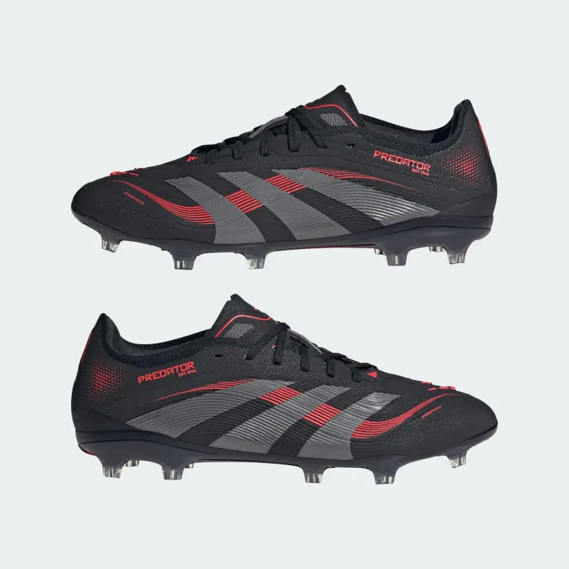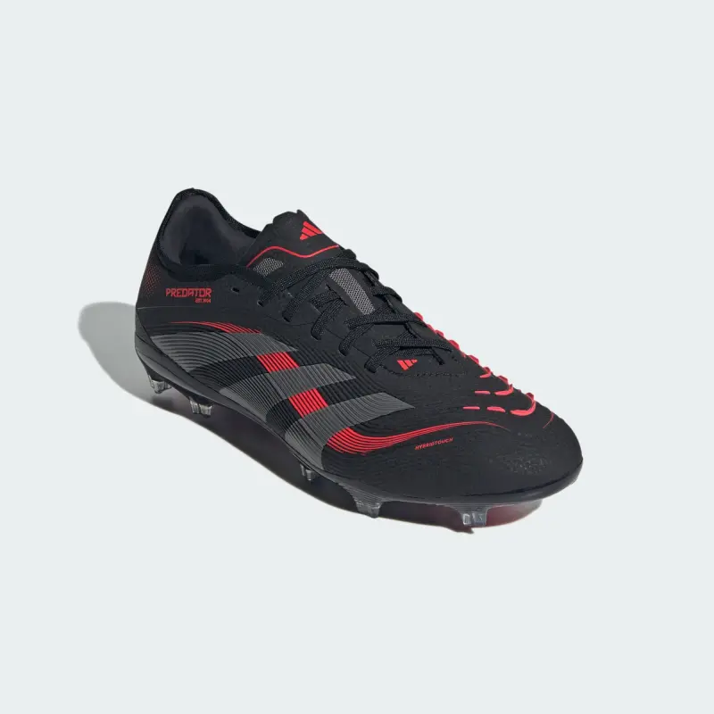 Go into every game knowing you’ll score in adidas Predator Pro cleats crafted for goals. Grippy rubber Strikeskin fins on the soft, flexible HybridTouch upper assist with every strike of the soccer. Underneath, a full-length Controlplate outsole offers all the stability you need to set your sights on firm ground pitches.