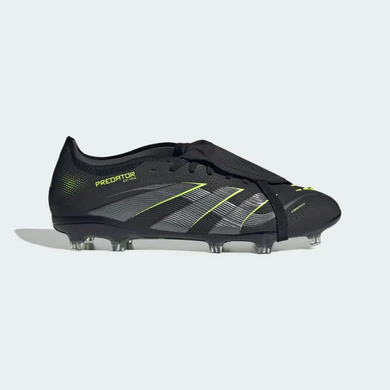 Discover the difference between aiming to score and knowing you will with adidas Predator cleats that are crafted for goals. These Pro soccer cleats have a flexible HybridTouch upper with a fold-over tongue and grippy rubber Strikeskin fins that help control every strike of the ball. Turn them over and you’ll find a full-length Controlplate outsole designed to keep you stable on dry grass.