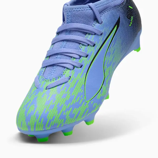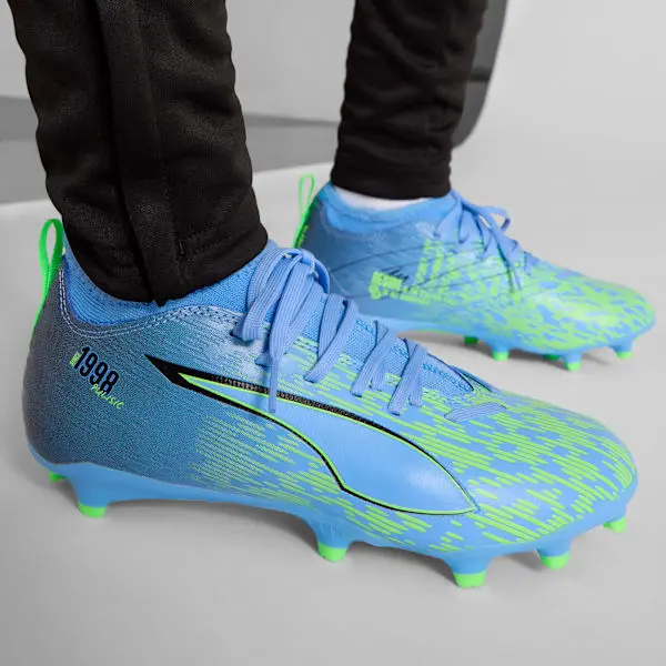How fast is the ULTRA 5 MATCH? Fasten your seatbelt. Perfect for up-and-coming speed merchants, this version of ULTRA comes with PUMA’s brand-new SPEEDSYSTEM outsole and FastTrack stud design for explosive traction. Three rounded studs on the lateral side let you switch between firm ground and artificial grass. Wherever you play, play at full throttle.