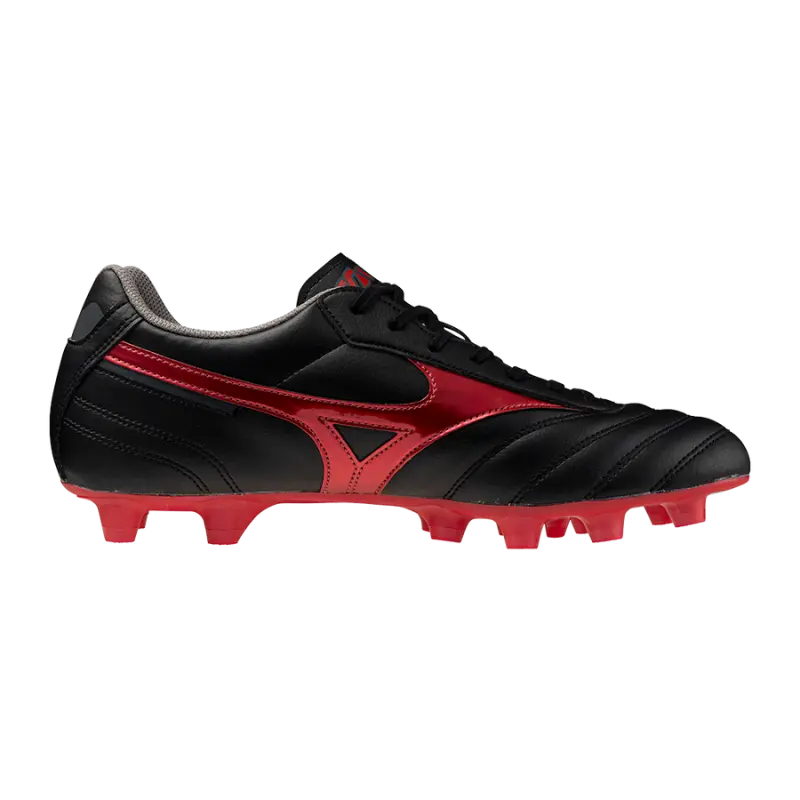 Celebrating the 40th anniversary of the MORELIA brand, this updated MORELIA II CLUB model offers a soft artificial leather upper that gently wraps your foot for a snug, barefoot feel. Its highly durable TPU outsole is built to withstand the rigors of play on any surface, including soil, artificial grass, and natural grass. This lightweight boot is perfect for football players who demand flexibility and comfort across all terrains.