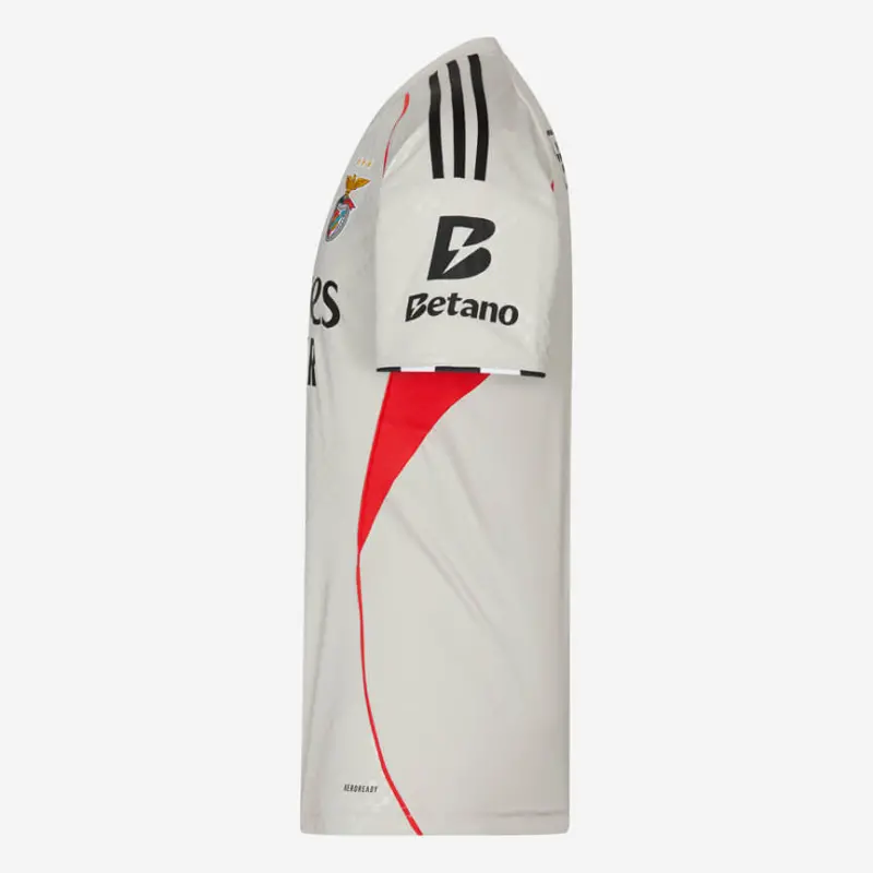 The sides of the jersey have mesh inserts to improve comfort and breathability, as well as red details.Match the SL Benfica 2025-2026 Beige Away Jersey with other SL Benfica equipment.