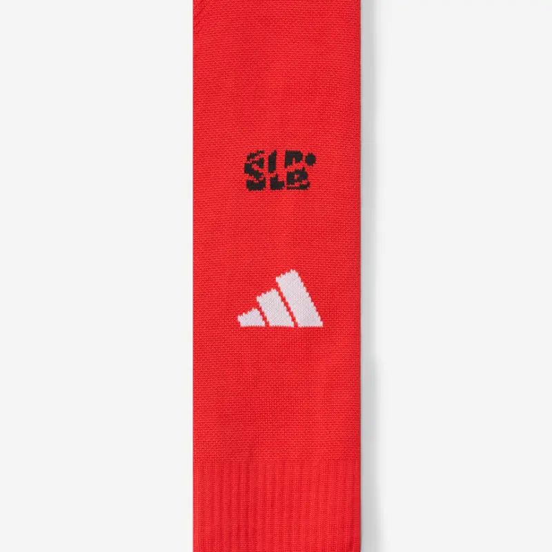 Meias vermelhas, com pormenores pretos e brancos, do equipamento principal do Sport Lisboa e Benfica, utilizadas pela equipa durante a época de 2025-2026.
