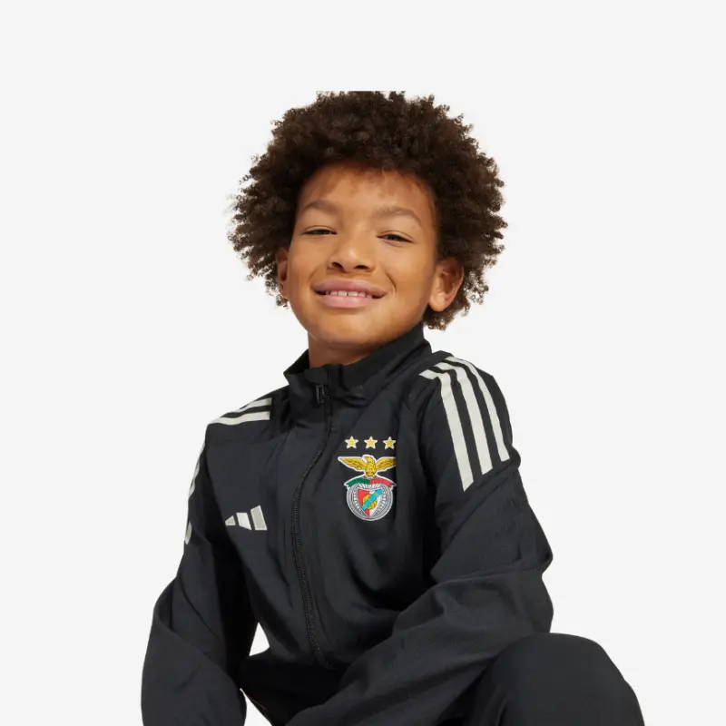 Black Adidas jacket, worn by the Sport Lisboa e Benfica team during leisure moments in the 2025-2026 season, for kids.