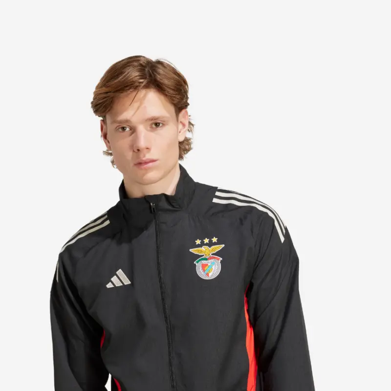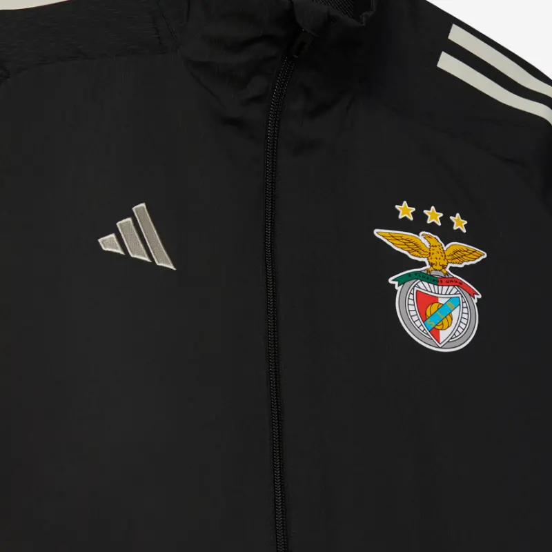 Black Adidas jacket, worn by the Sport Lisboa e Benfica team during leisure moments in the 2025-2026 season.