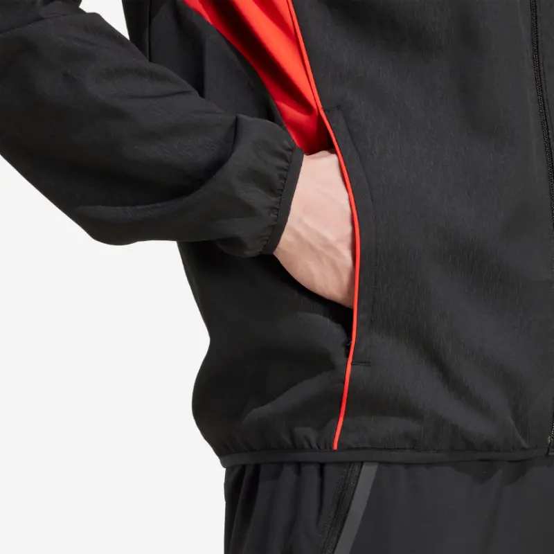 The jacket features the club’s emblem on the left side of the chest and the Adidas logo, on the right.