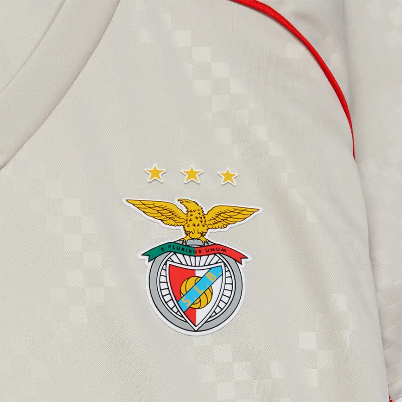 Replica of the beige away kit jersey worn by the Sport Lisboa e Benfica team on the field during the 2025-2026 season, for women.