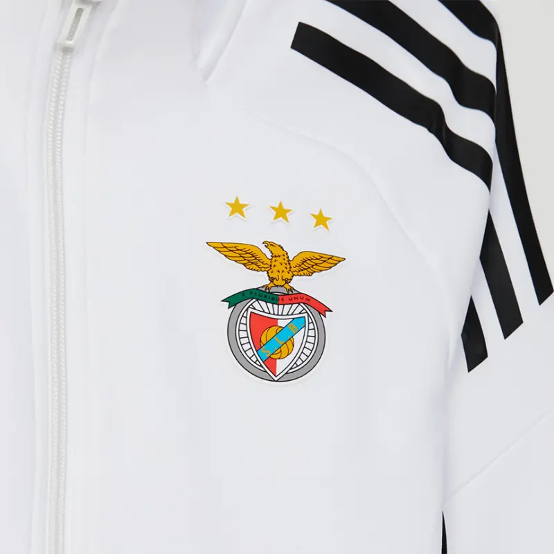 White Adidas training jacket, worn by the technical staff of Sport Lisboa e Benfica during the 2025-2026 season, for kids.