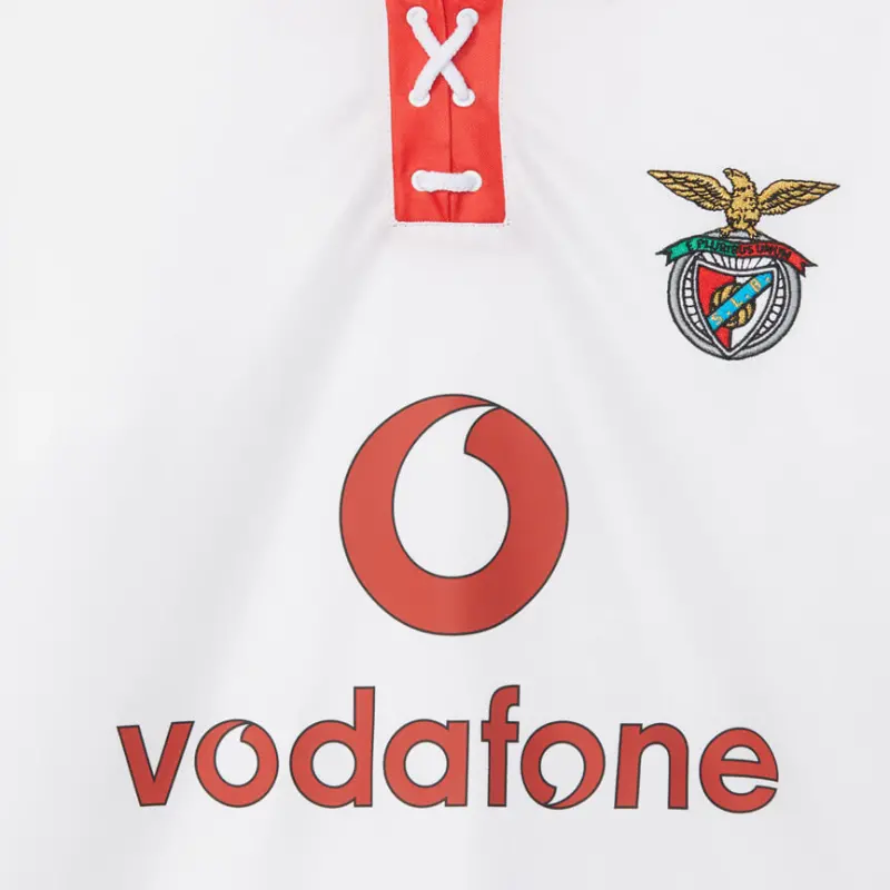 This jersey celebrated Sport Lisboa e Benfica’s centenary in a great match against Real Madrid at the Estádio da Luz during pre-season, which ended in a 2-2 draw and also saw the club win the national football championship title 11 years later in a match against Boavista at the Estádio do Bessa.