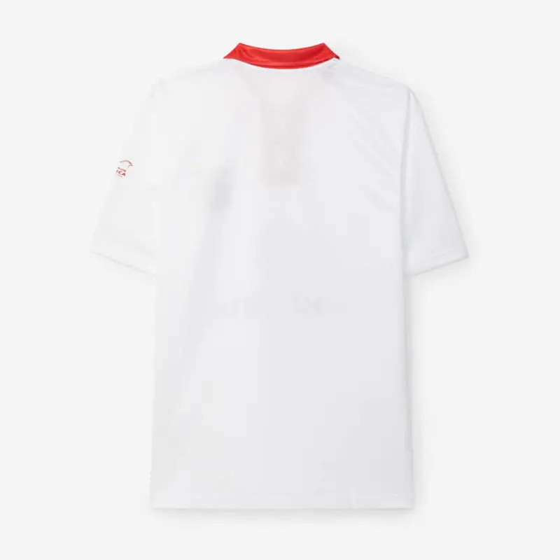 The SL Benfica emblem is embroidered on the left side of the chest. The shirt is made up of a red collar, accompanied by a red placket, which can be adjusted to your liking using white laces.