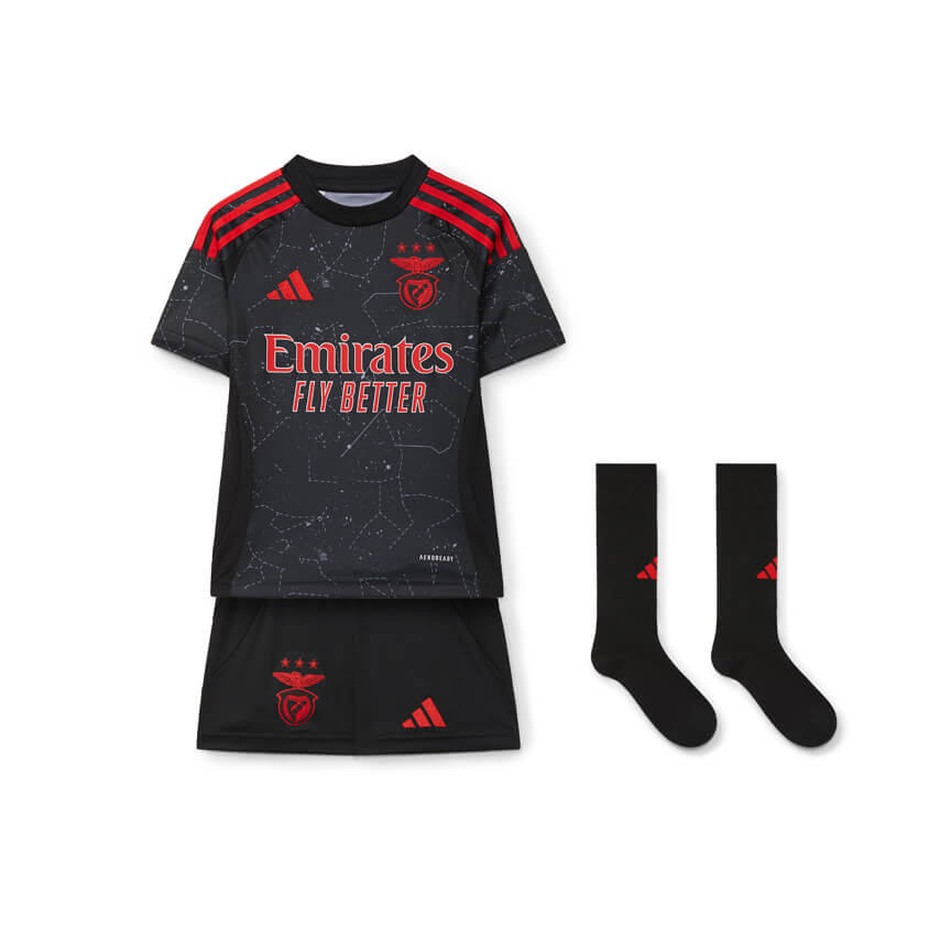 Adidas mini away kit, used by the Sport Lisboa e Benfica team on the field in the 2024-2025 season, for kids.