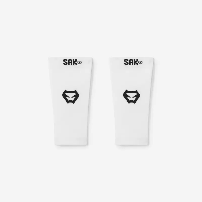 The pack consists of the shin pads and two black leggings with the SAK logo in white, to hold the shin pads on the leg.